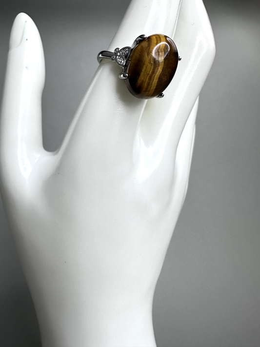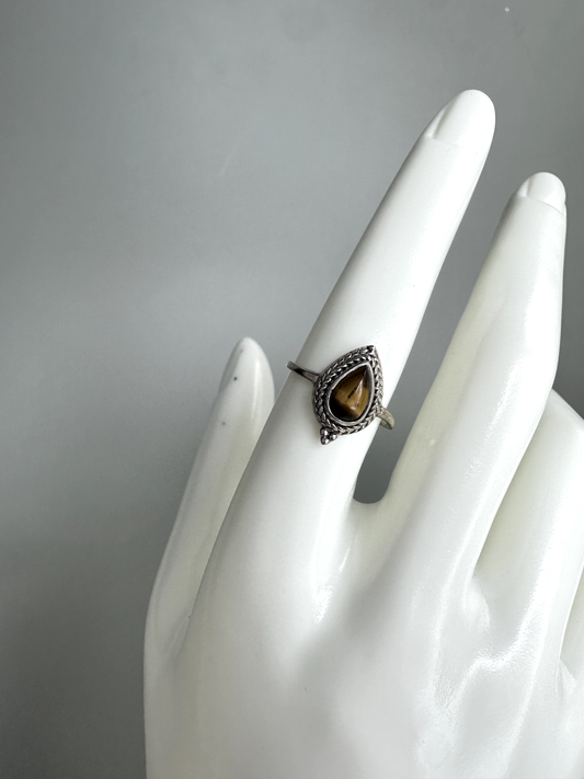 Tigers Eye Teardrop Ring | S925 Size 7.5