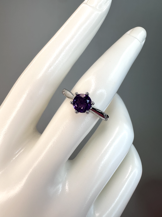 Simple Amethyst Ring | Adjustable | Silver Plated