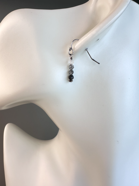 Tourmaline in Quartz Faceted Micro Bead | Sterling Silver Earrings
