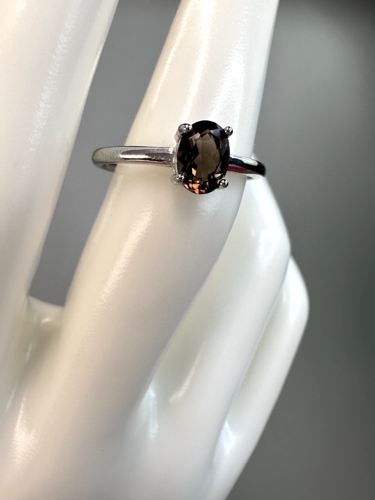 Simple Smokey Quartz Oval Ring | Adjustable | Silver Plated