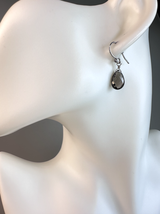 Smoky Faceted Quartz Teardrop | Sterling Silver Earrings