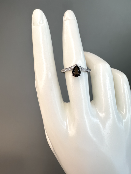 Smokey Quartz Teardrop Ring | Adjustable | Silver Plated