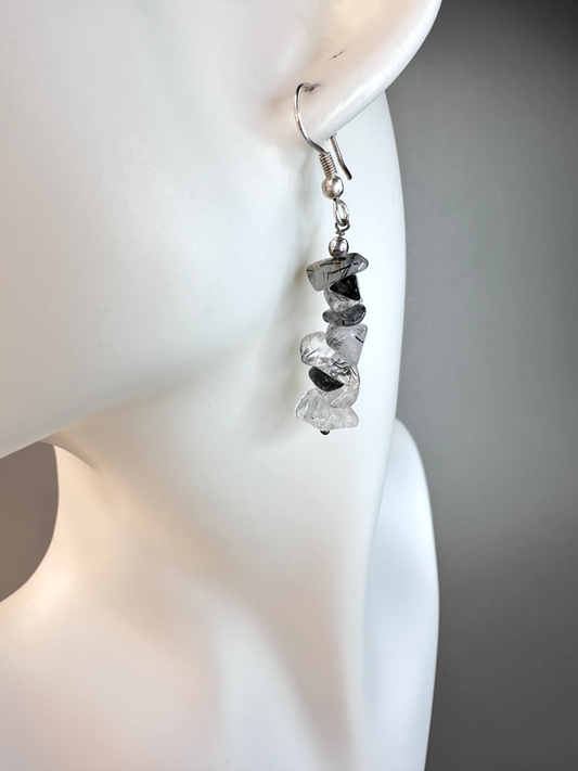 Tourmaline in Quartz Chip | Sterling Silver Earrings