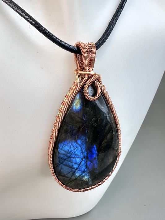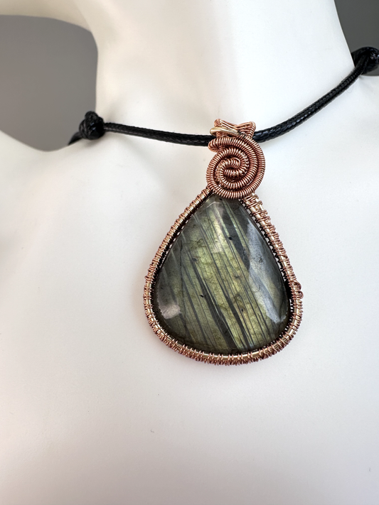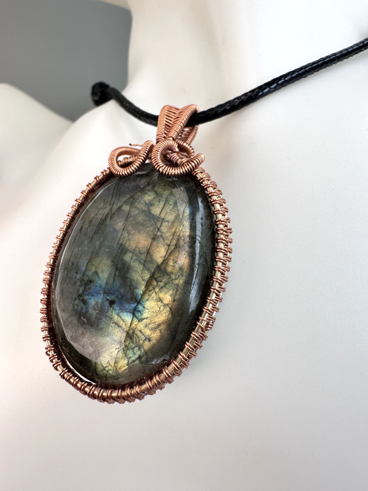 Wire Wrapped Copper Labradorite Pendant 1 | Flashy