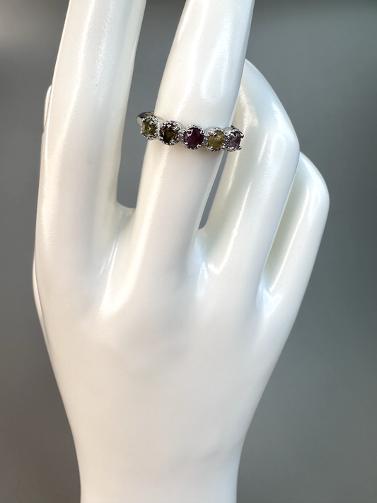 Watermelon Tourmaline Band Ring | Adjustable | Silver Plated
