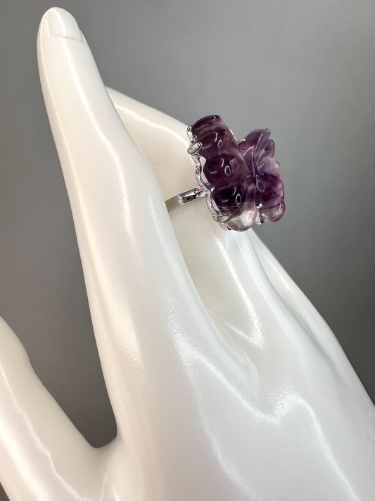 XL Pink Fluorite Butterfly Rings | Adjustable | Silver Plated