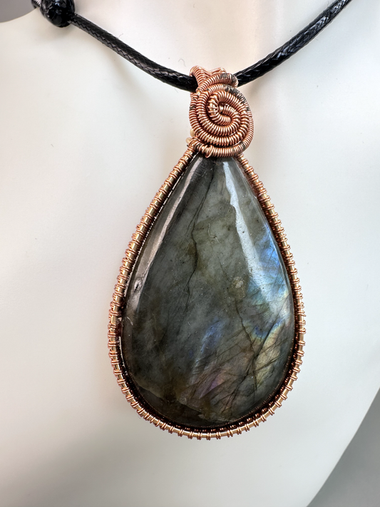 Wire Wrapped Copper Labradorite Pendant 2 | Flashy