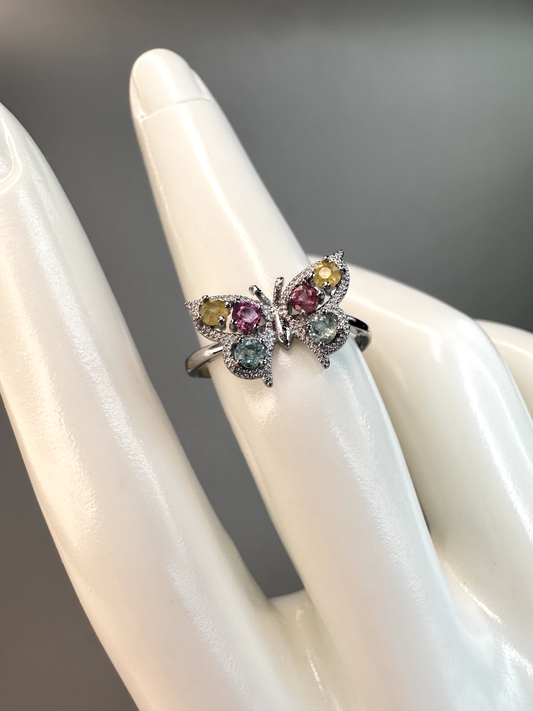Watermelon Tourmaline Butterfly Ring | Adjustable | S925