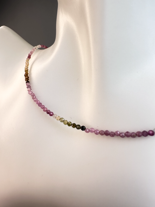 Watermelon Tourmaline Faceted Micro Beaded Choker | Sterling Silver