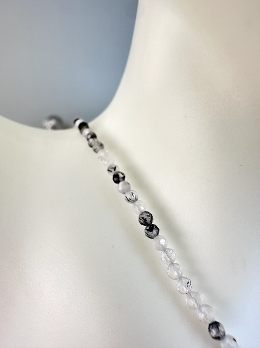 Tourmaline in Quartz Faceted Micro Beaded Choker | Sterling Silver