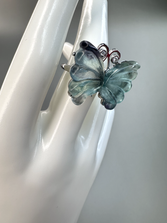 XL Green Fluorite Butterfly Rings | Adjustable | Silver Plated
