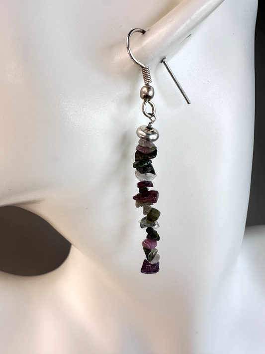 Watermelon Tourmaline Chip | Sterling Silver Earrings