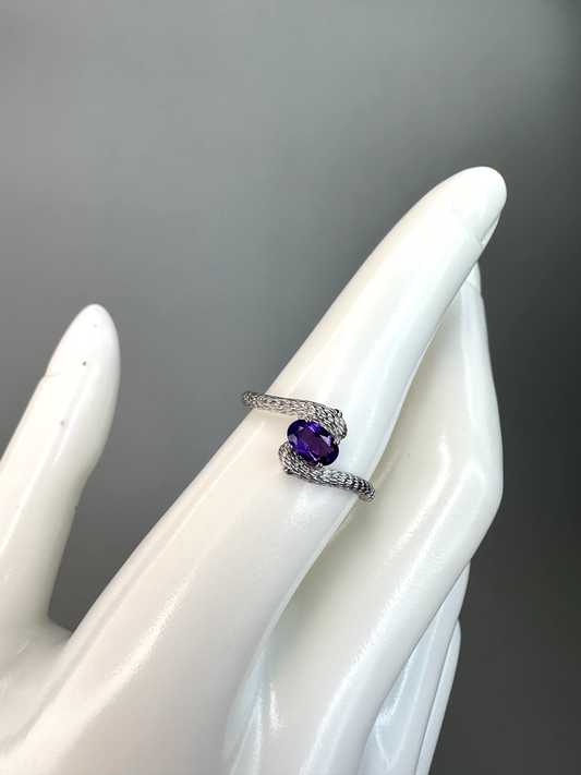 Amethyst Snake Ring | Adjustable | Silver Plated