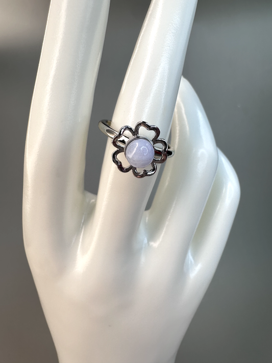 Blue Lace Agate Flower Fidget / Spinning RIng | Adjustable | Silver Plated