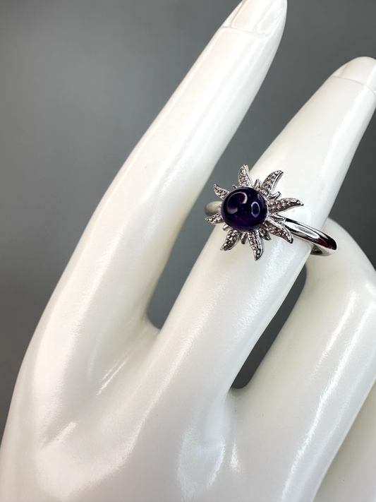 Amethyst Sun Fidget/ Spinning Ring | Adjustable | Silver Plated