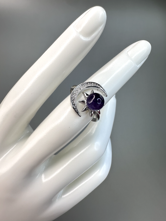 Amethyst Sun and Moon Ring | Adjustable | Silver Plated