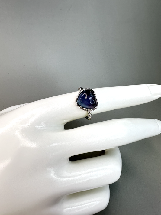 Blue Fluorite Heart Ring | Adjustable | Silver Plated