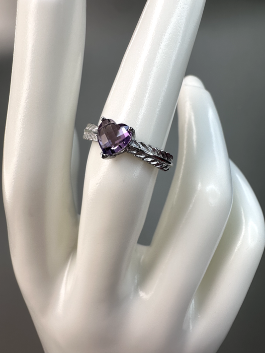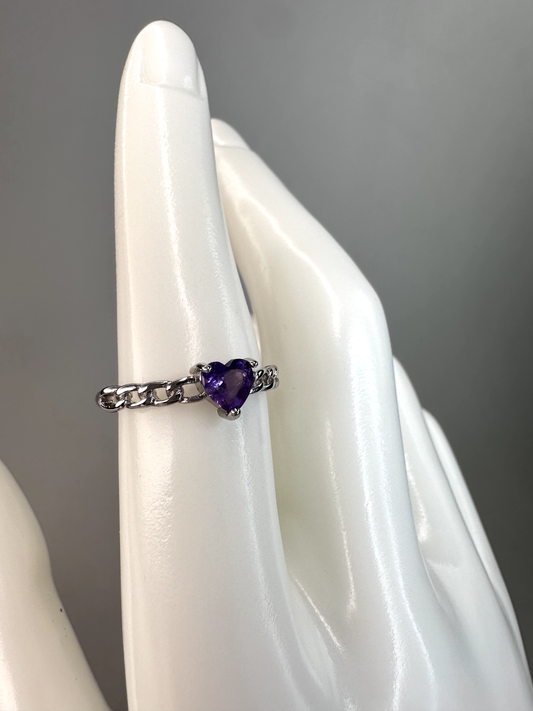 Faceted Amethyst Heart Ring | Adjustable | S925