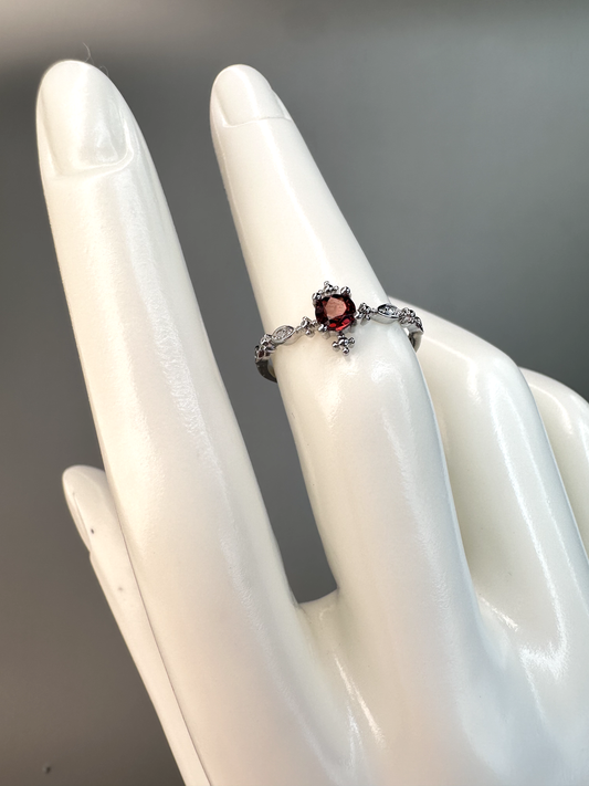 Dainty Garnet Ring | Adjustable | Silver Plated