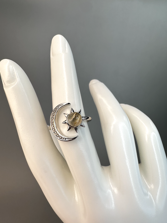 Golden Rutile Sun and Moon Ring | Adjustable | Silver Plated *RARE*