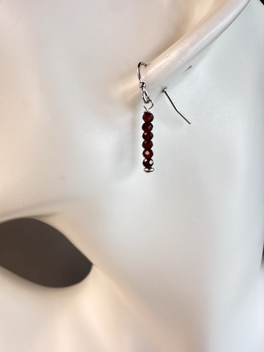 Garnet Faceted Micro Bead | Sterling Silver Earrings