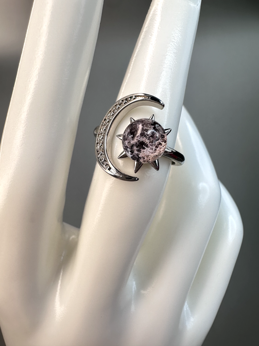 Lodalite (Garden Quartz) Sun & Moon Adjustable Ring 1 | Silver Plated