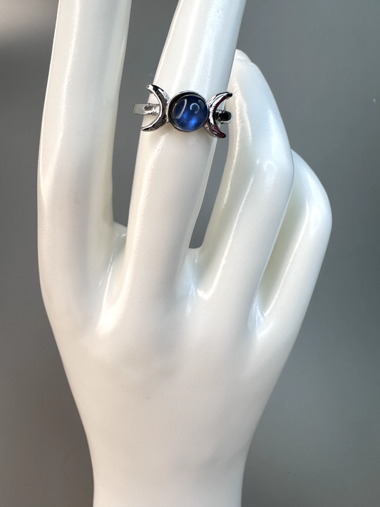 Labradorite Triple Moon Goddess Ring | Adjustable | Silver Plated | Flashy