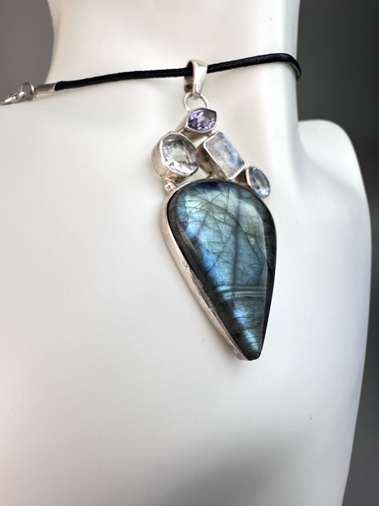 Labradorite Teardrop Pendant | Mixed Stones | S925