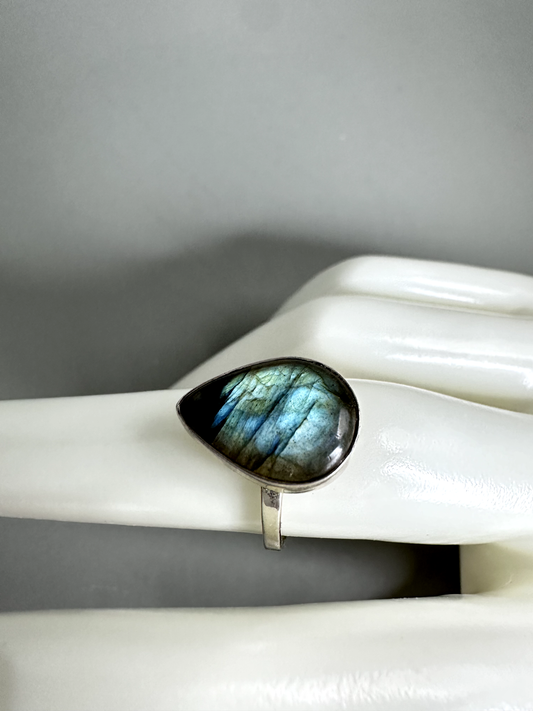 Labradorite Teardrop Ring | S925 Size 6 | Flashy