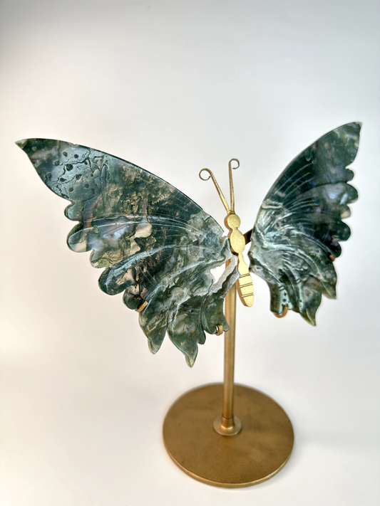 Moss Agate Butterfly Wings | Removeable Stand | Statement