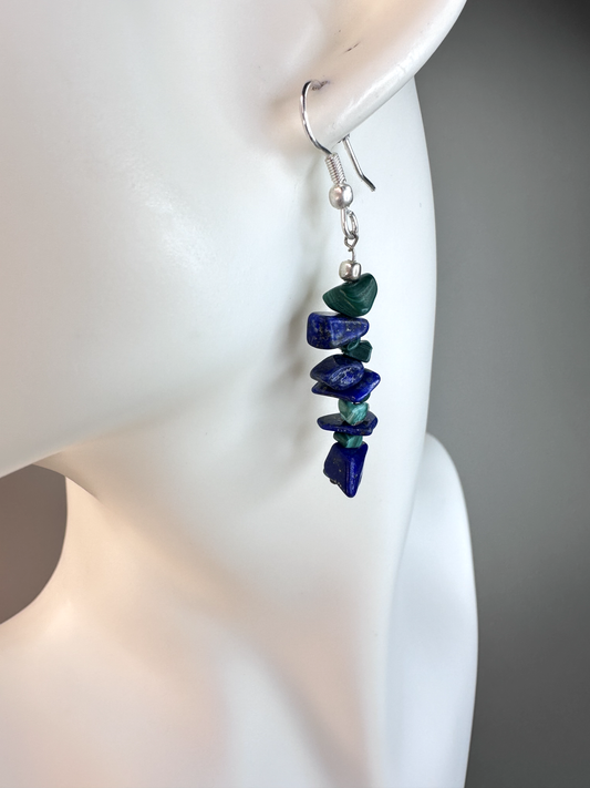 Malachite x Lapis Chip | Sterling Silver Earrings